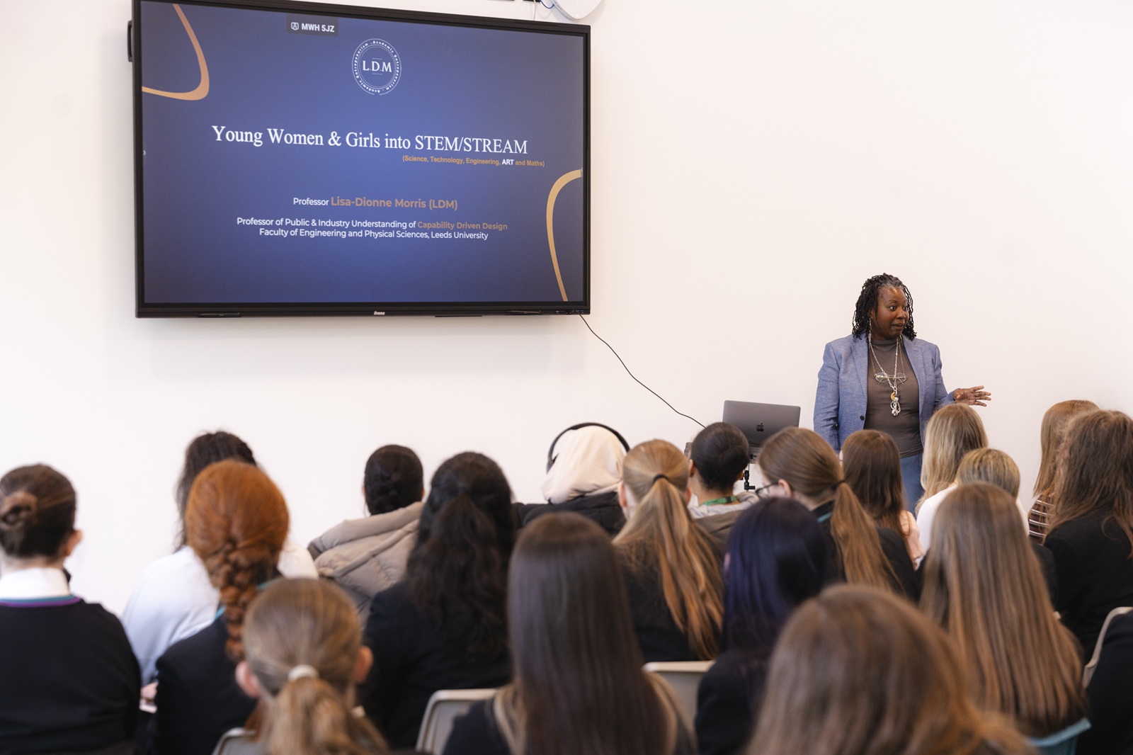 Speakers included Professor Lisa-Dionne Morris from the University of Leeds, Charlotte Dudill from AW Hainsworth, and Dr Nadia Montevecci from Parker Engineering. Each shared their personal journeys as women in STEM and outlined the many opportunities on offer to the next generation.